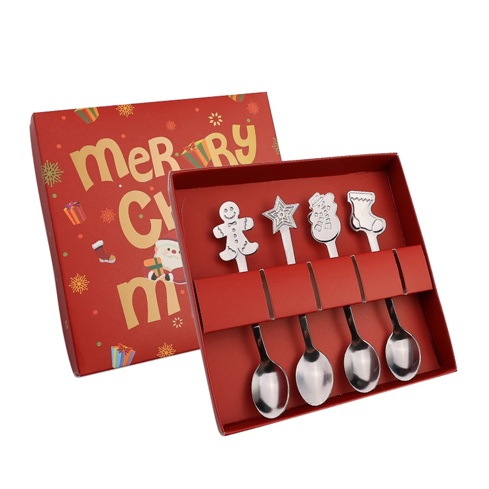 4-Piece Stainless Steel Christmas Tree & Elk Dessert Spoon Set