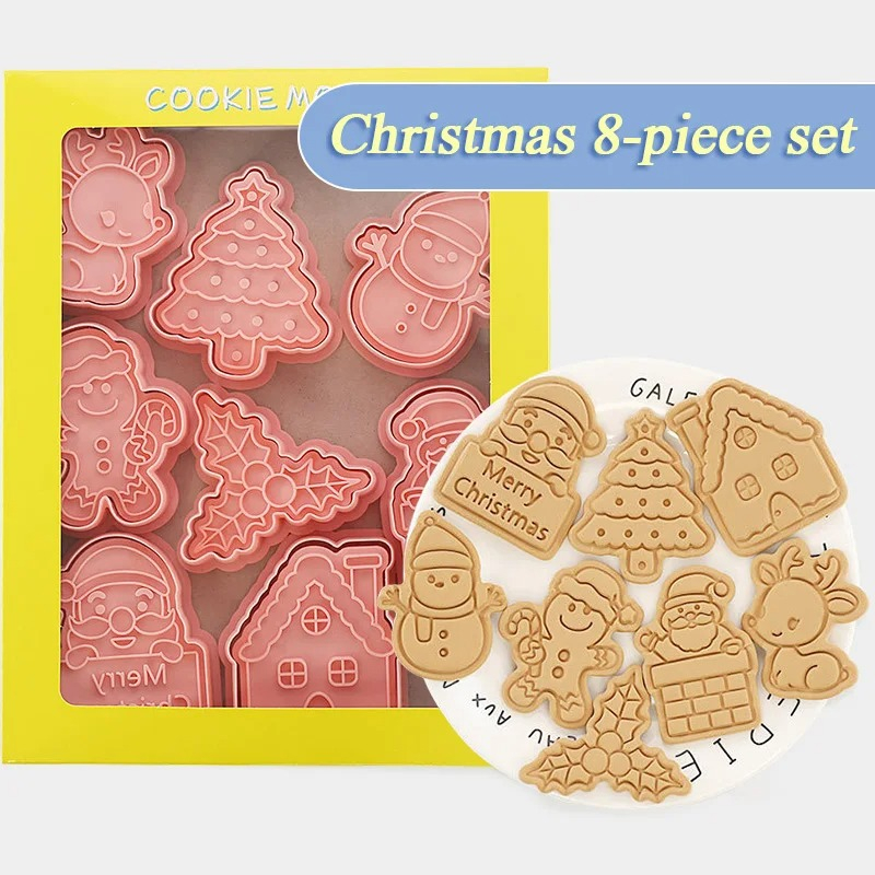 - Set includes 8 unique Christmas-themed cookie cutters.