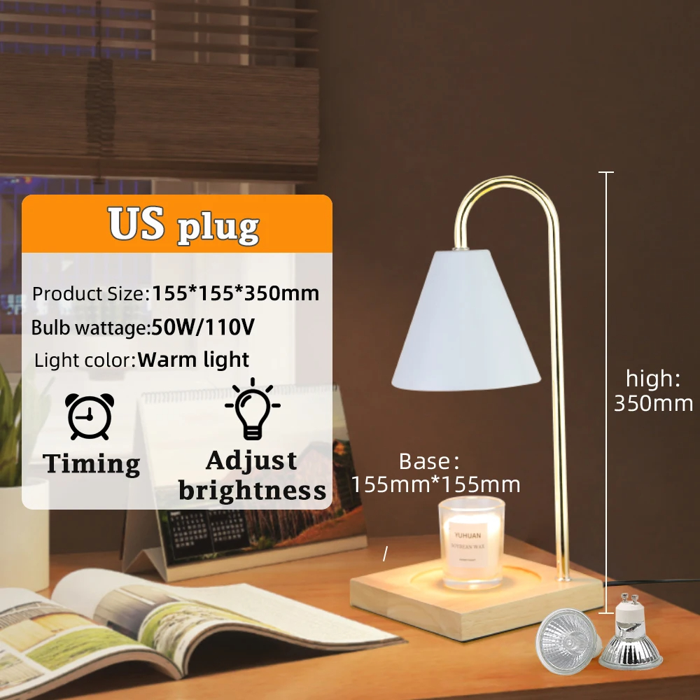 Enhance your home with the soothing ambiance of this Adjustable Candle Warmer Lamp. Combining aromatherapy and home decor, this retro-inspired table lamp melts wax candles without the need for a flame, creating a warm and inviting atmosphere. Its sleek wooden and metal design makes it the perfect addition to any living room, bedroom, or study. The adjustable brightness and built-in timer make it a versatile piece that’s as functional as it is beautiful. Whether you’re looking to unwind after a long day or add a decorative touch to your space, this lamp is the perfect choice.