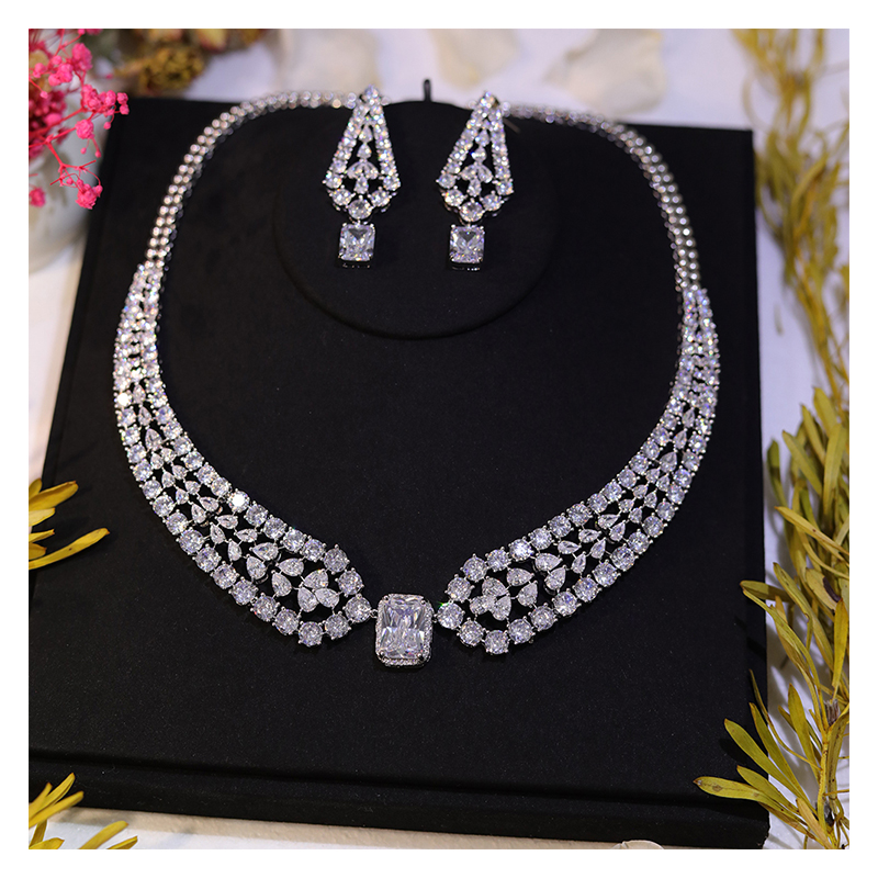 The craftsmanship and materials of this set make it truly unique. The sparkling cubic zirconia stones mimic the brilliance of diamonds at a fraction of the cost, while the durable copper base ensures the set remains lightweight and comfortable. The timeless square design offers versatility, allowing you to reuse this jewelry for multiple occasions, making it a valuable addition to your collection.