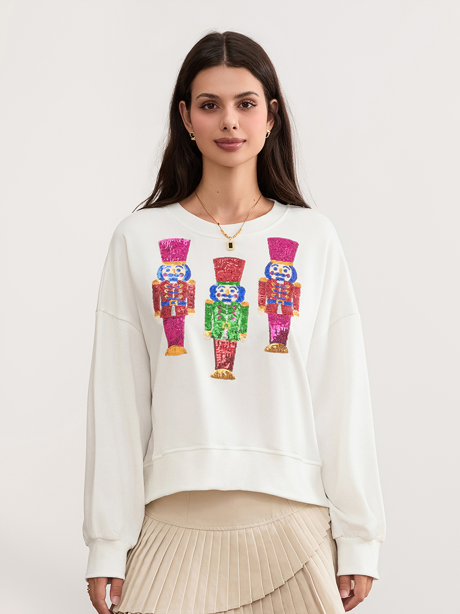 - Unique Holiday Style: Featuring a dazzling Nutcracker design with sequins, this sweatshirt is the perfect festive statement piece.