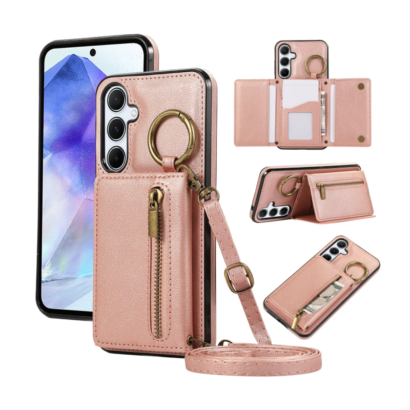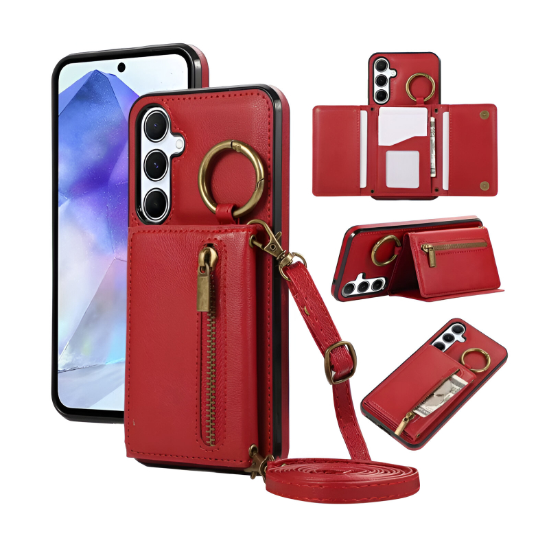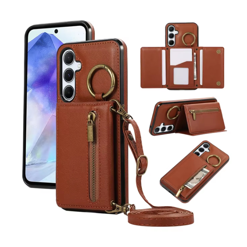 Elevate your phone protection and convenience with this crossbody wallet leather case, designed specifically for Samsung Galaxy models. Featuring multiple card slots, a secure zipper compartment, and a detachable strap, this case is the ultimate accessory for on-the-go lifestyles. Its sleek leather finish and practical design make it a must-have for those seeking style and functionality in one package.