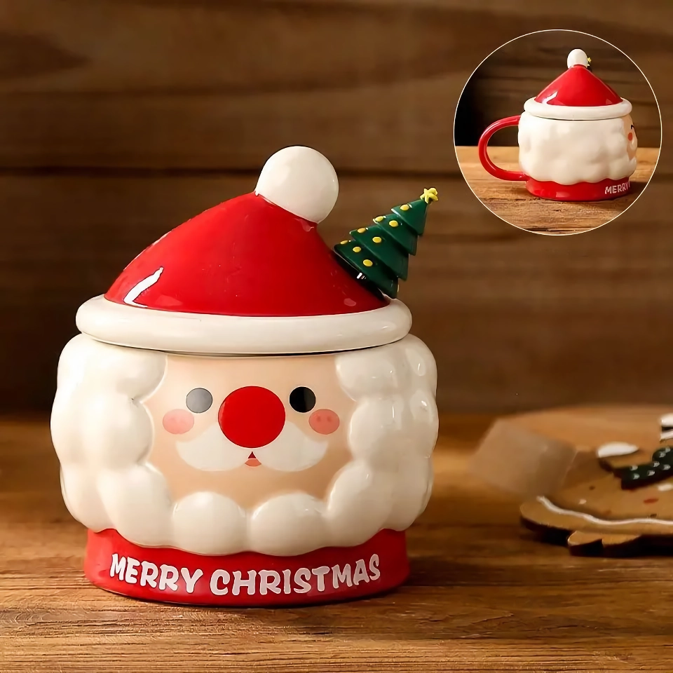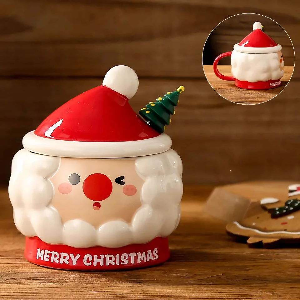 Cute Santa Claus Mug with Lid & Spoon – Perfect Holiday Gift