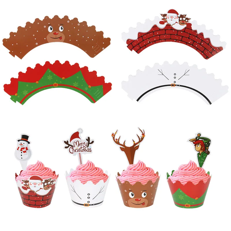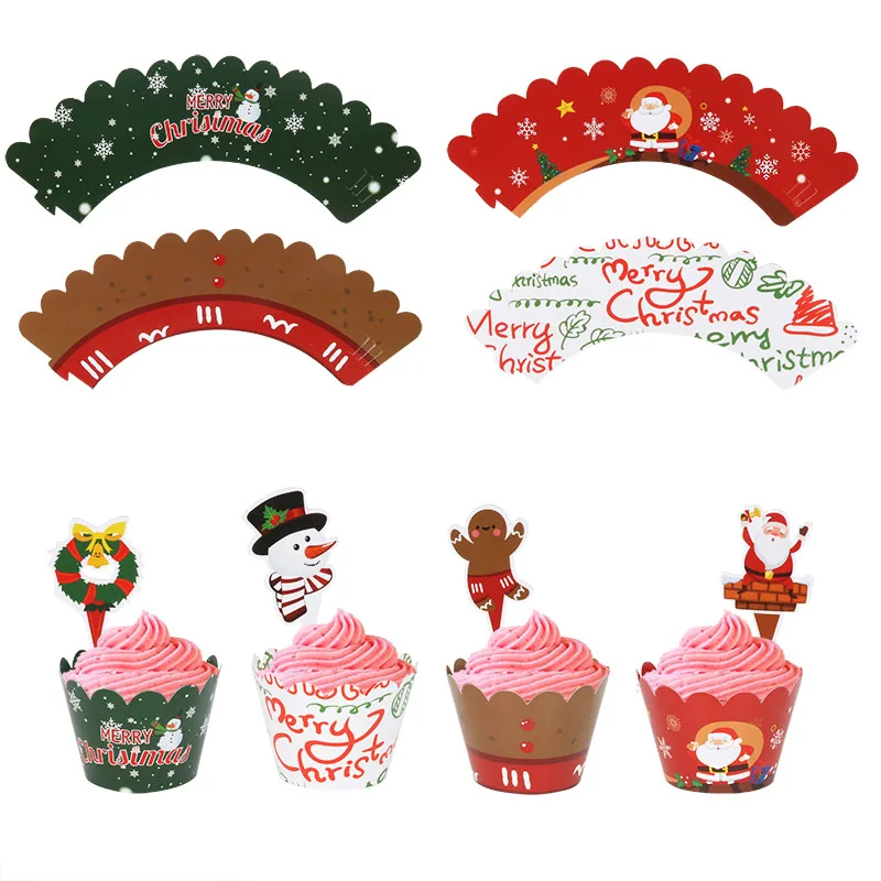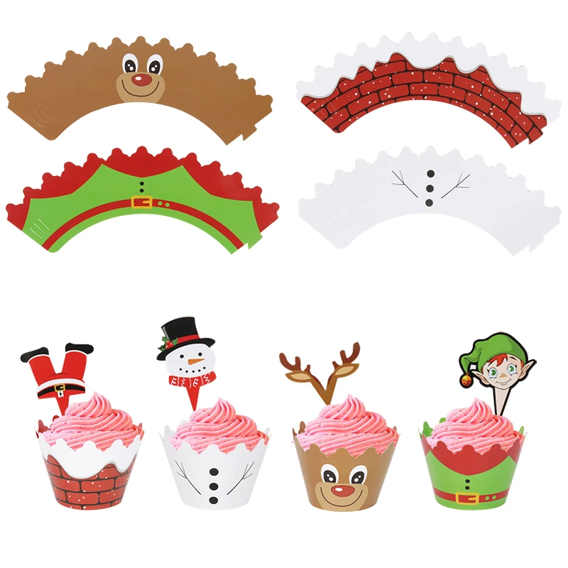 Festive 24-Piece Christmas Cupcake Wrapper & Topper Set