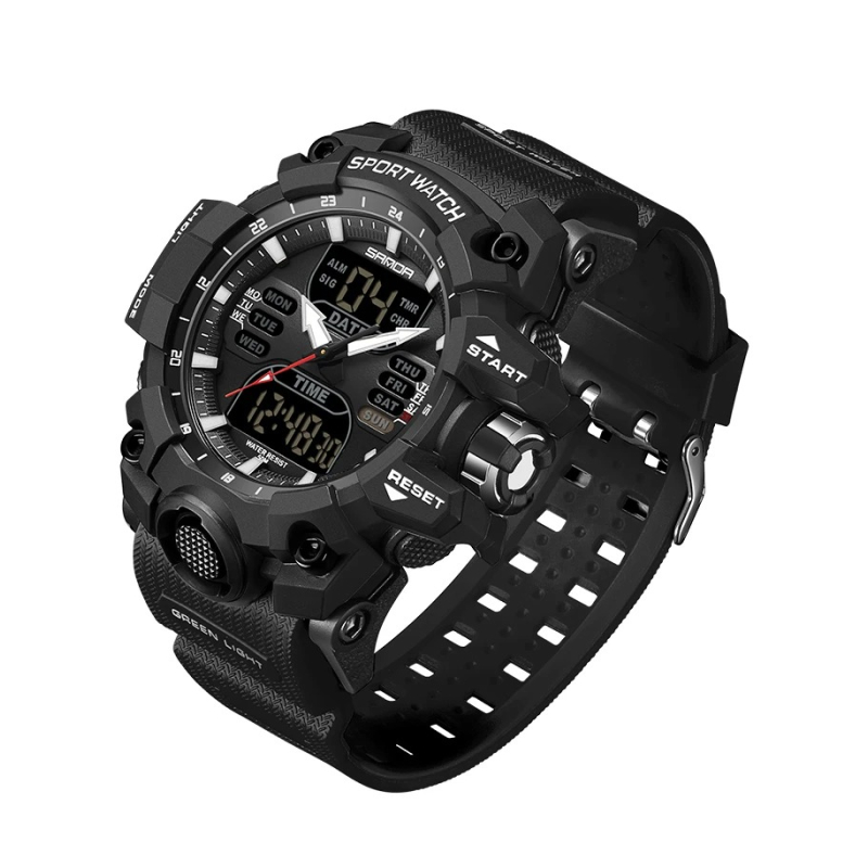 Stay On Time, Stay On Trend with This Stylish Men’s Watch Ready to elevate your style and performance? This luxury men’s sports watch is the ultimate blend of fashion, function, and durability. Designed with both analog and digital displays, this watch offers precise timekeeping in any environment. Whether you’re hiking…