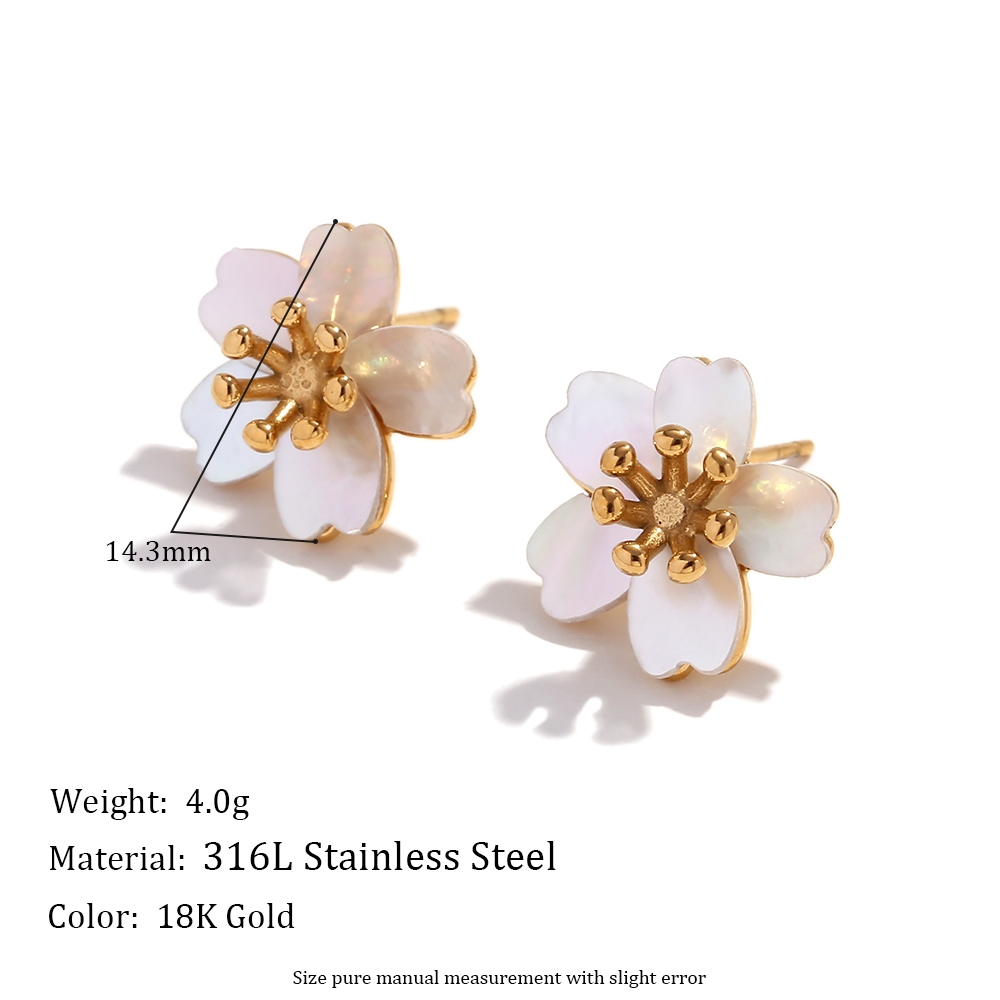 Elevate your jewelry collection with these exquisite Natural Fritillaria Cherry Blossom Earrings. Crafted with care and precision, these earrings feature delicate cherry blossom designs plated in 18K gold for a luxurious finish. The addition of natural fritillaria stone adds a touch of organic beauty, while the stainless steel base ensures durability and hypoallergenic comfort. Perfect for both everyday wear and special occasions, these earrings are a timeless symbol of grace and sophistication.