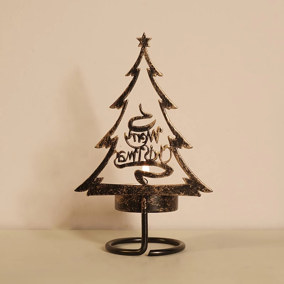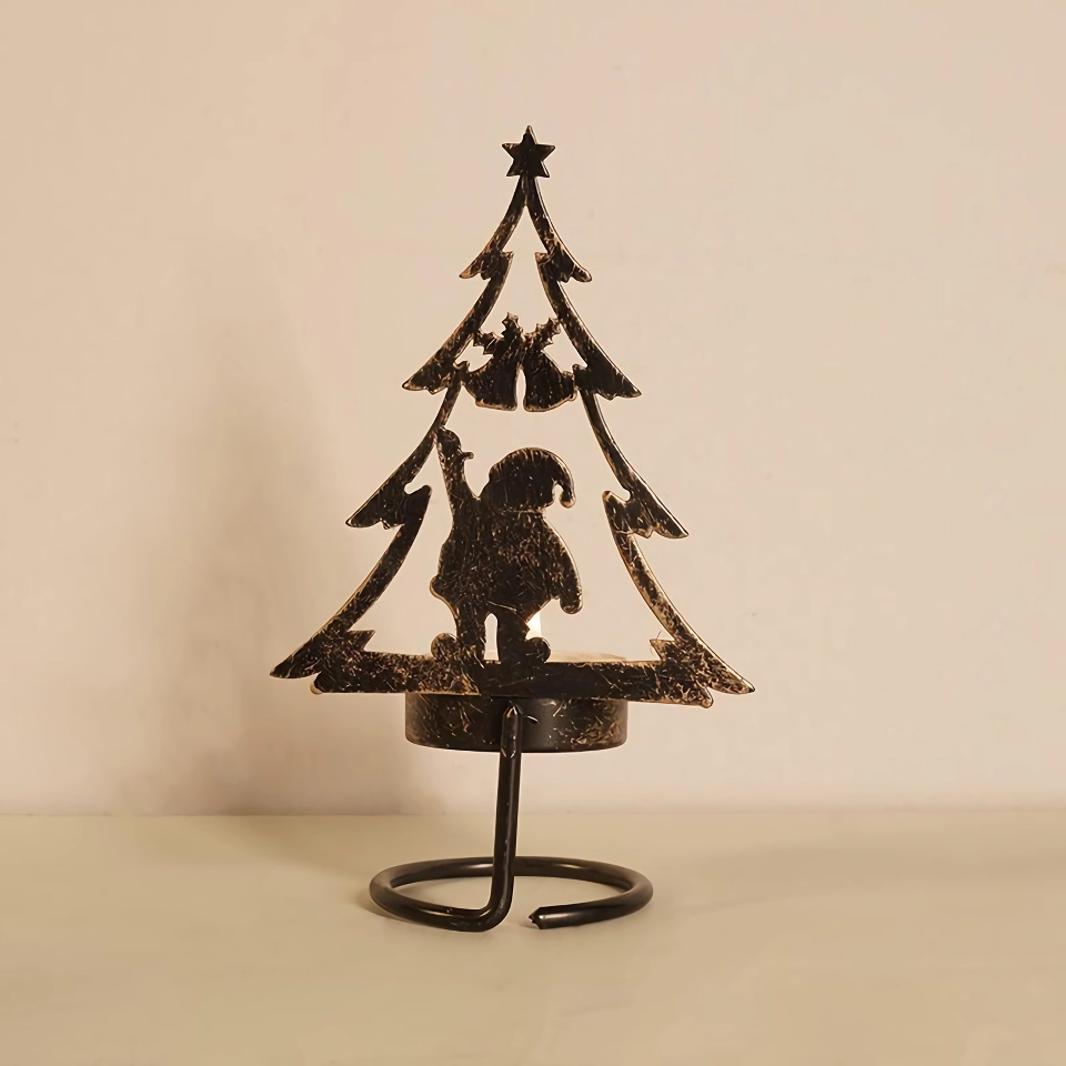Santa Claus and Christmas Tree Iron Candle Holder – Festive Holiday Decor