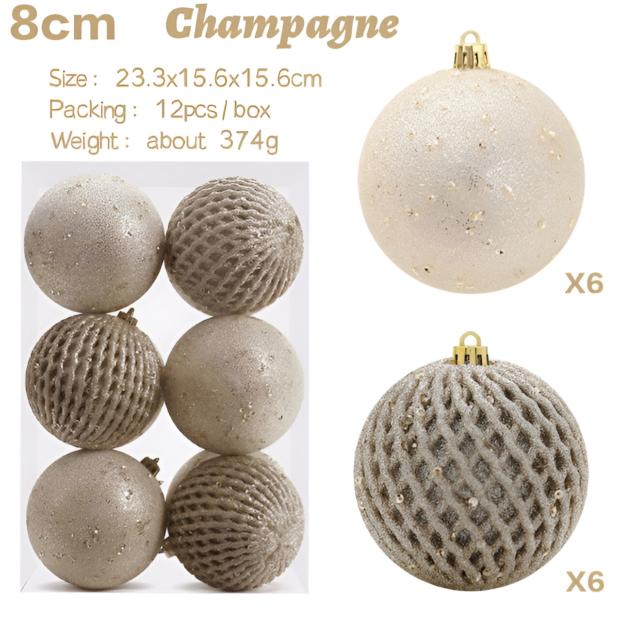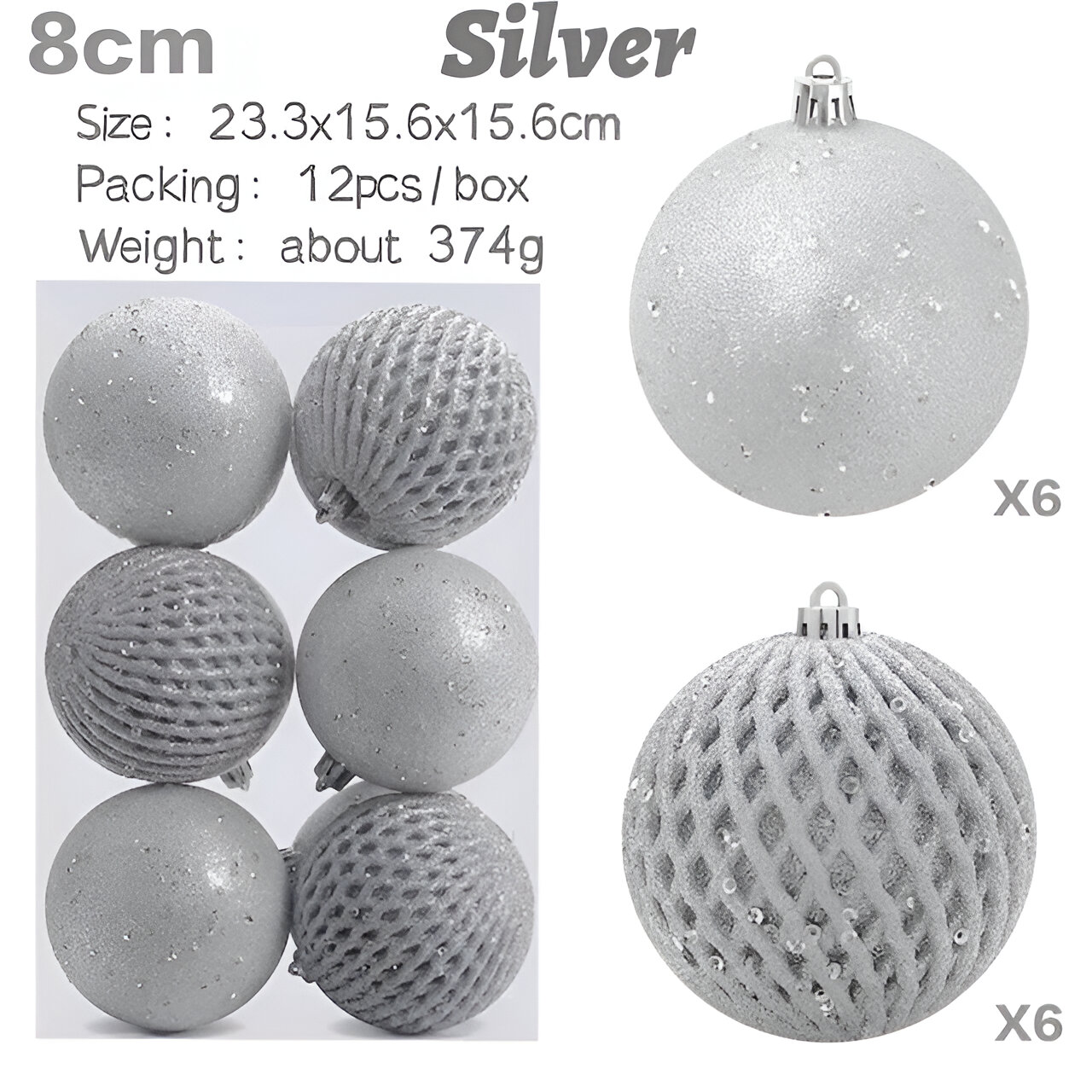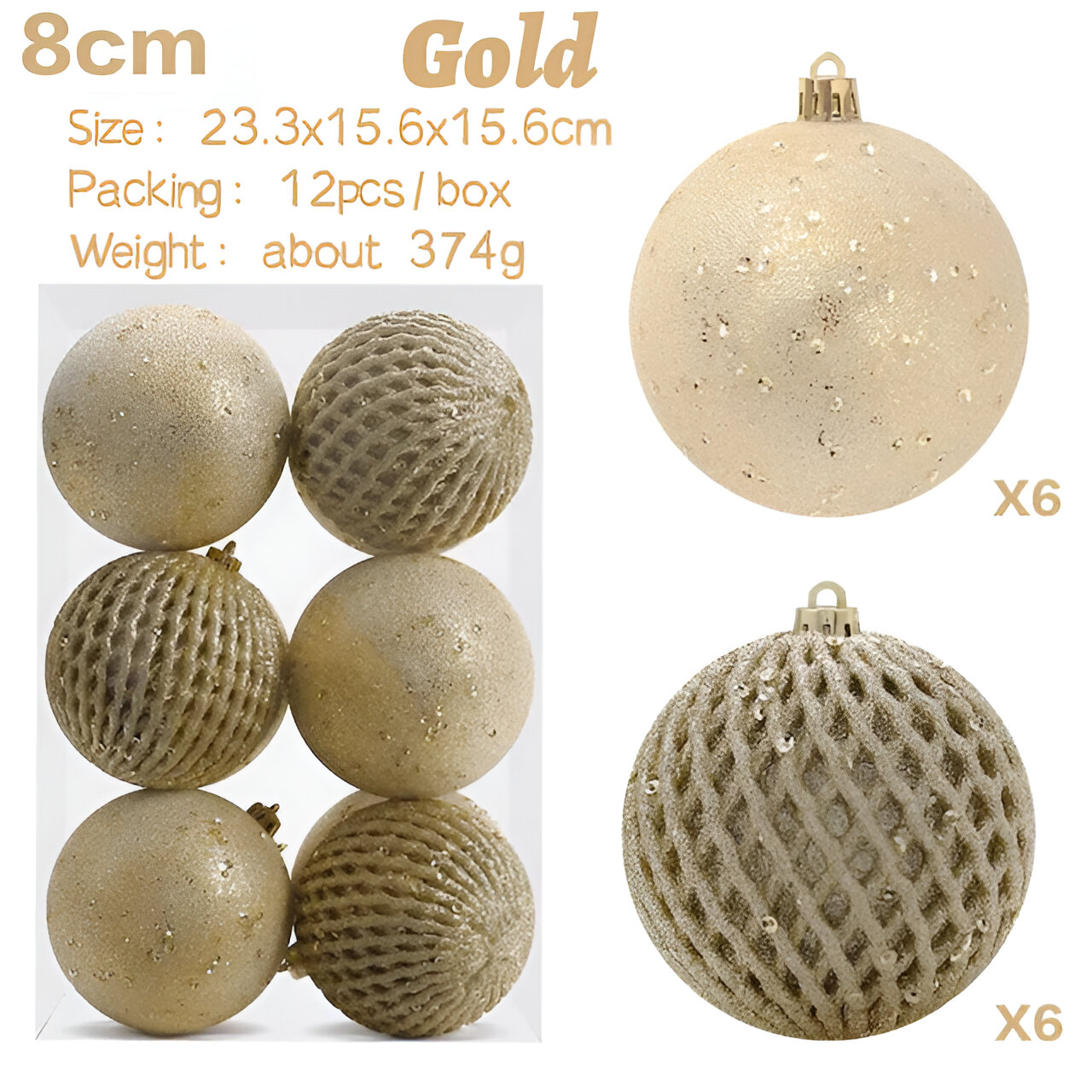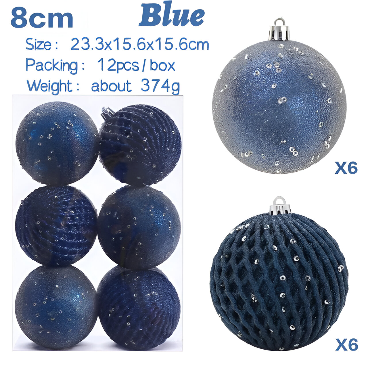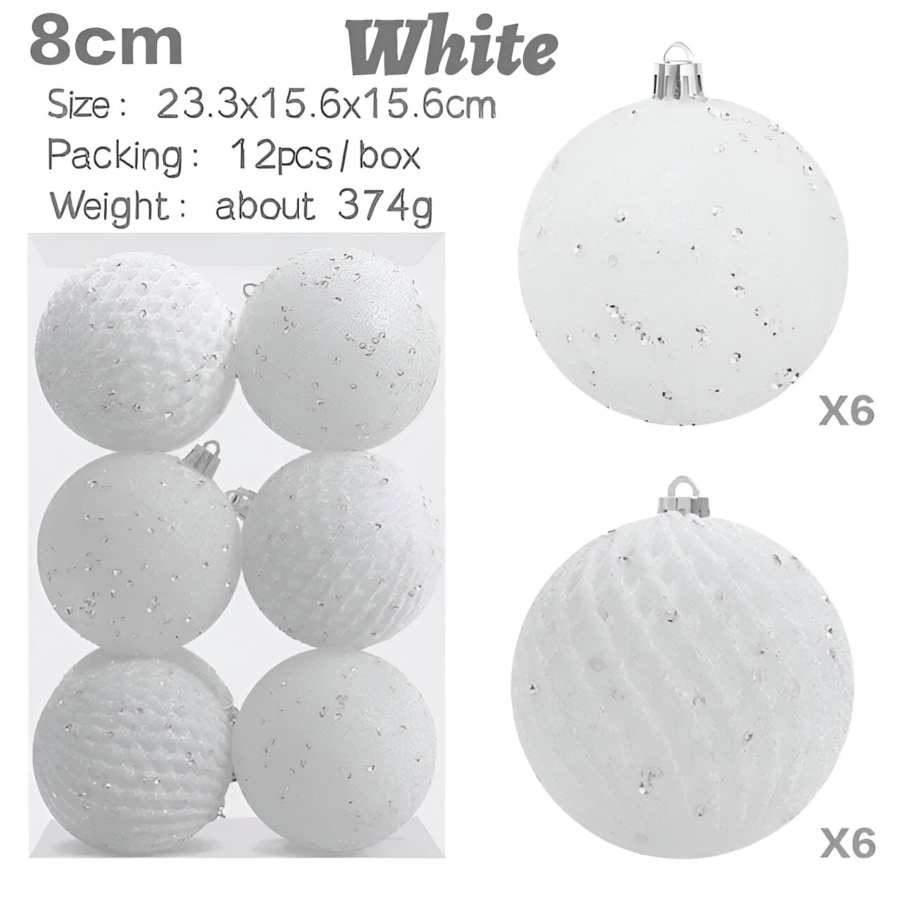 • Size: Each ball measures approximately 3.15 inches (8 cm) in diameter, ideal for both small and large Christmas trees.