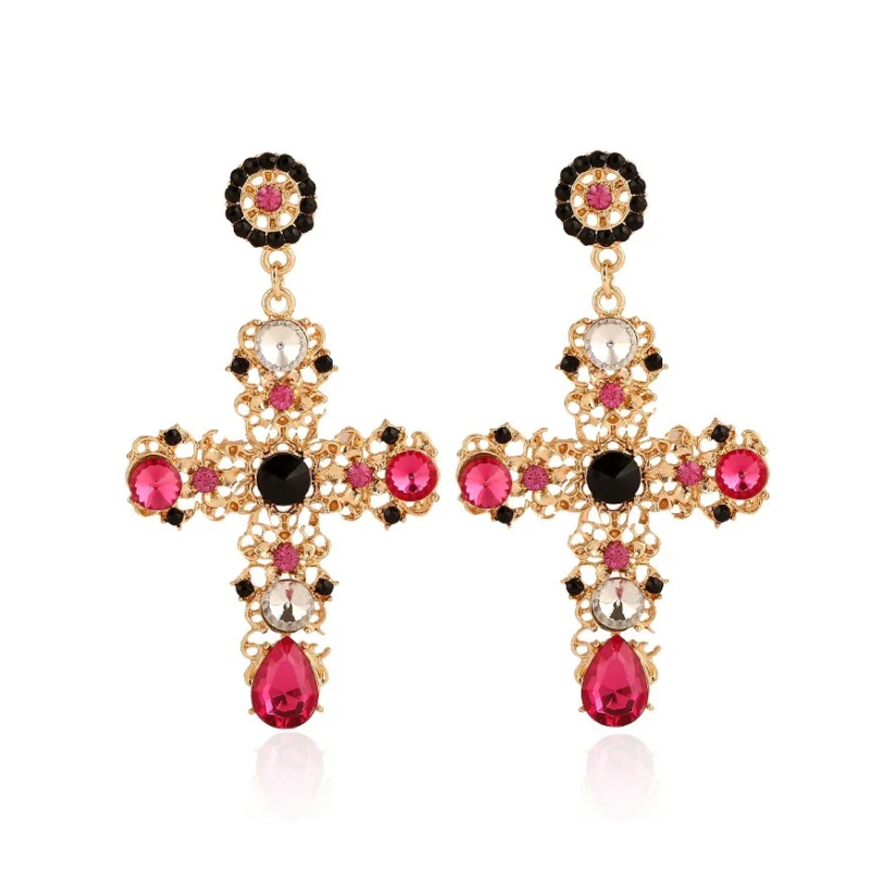 What sets these earrings apart is their unique design and premium craftsmanship. The intricate cross shape, paired with sparkling black and pink crystals, makes them a conversation starter. Lightweight yet durable, they’re built to last and offer all-day comfort. Whether you’re gifting them to a loved one or treating yourself, these earrings are a timeless piece that will never go out of style.